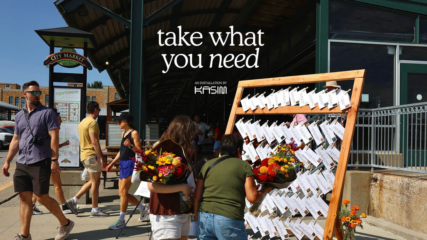 If you’re new here, Take What You Need is a project I started over a year ago as a physical installation that appeared in public spaces. The letters from that installation now live digitally here on my Substack.